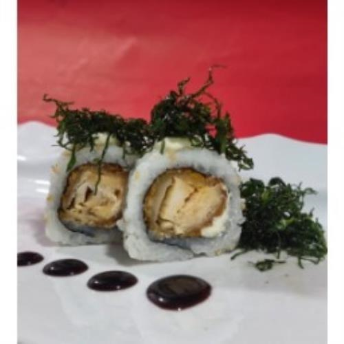 Arroz por fora , peixe branco marinado , creme chease e finalizado com crispy de couve.